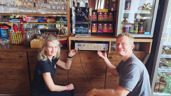 Restaurace ozvučená pomocí reproduktorů RPT 102, SP 412 a ústředny JPA 1186