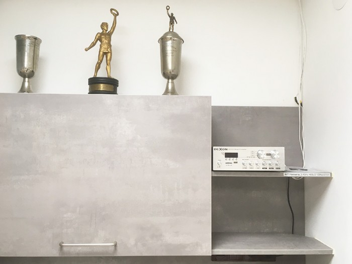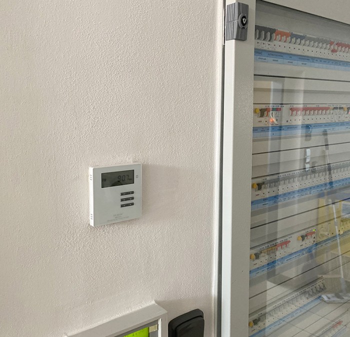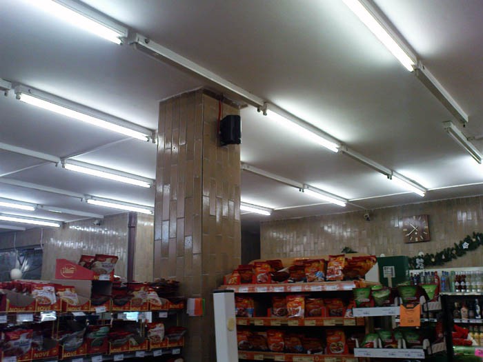 Nástěnný přehrávač MRP 2171 a reproduktory RP 122 v prodejně