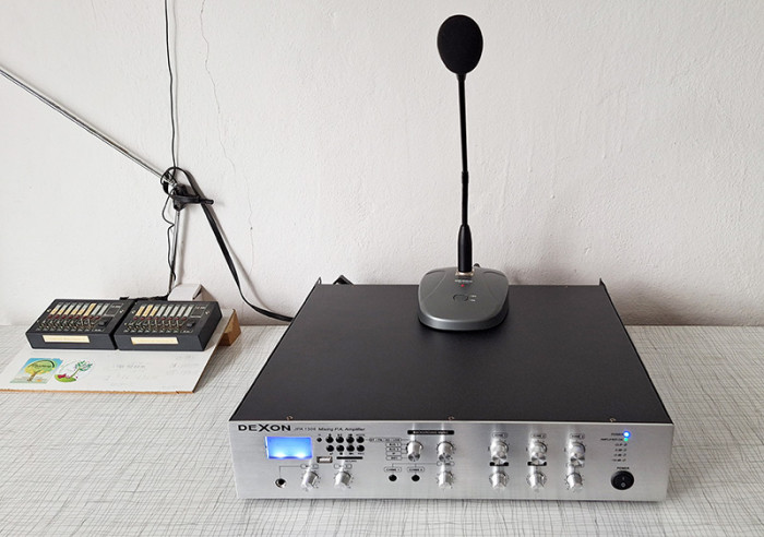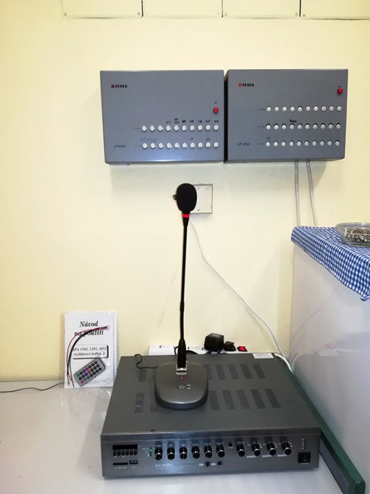 Ústředna JPA 1185 s mikrofonem PA 580 ozvučují školu