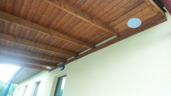 Bluetooth zesilovač JPM 2021 spolu s reprosoustavami SP 212 ozvučuje terasu