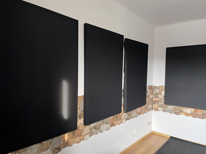 Akustické panely vyrobené z průzvučné tkaniny a tlumícího rouna