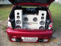 Dobrý den zasílám fotografie vašich výrobků v praxi.Na fotografiích je ukázka ozvučení vozidla Renault Twingo.Vaše výrobky znám a používám delší dobu a jsem s nimi velice spokojen.Kvalita vašich výrobků je srovnatelná a mnohdy lepší než konkurence a hlavně jsou o mnoho levnější.Výrobky od vás nakupuji přes internet a ještě ani jednou jsem se nesetkal s nejmenším problémem,za to vám patří dík,dost psaní okolo a jdeme na to hlavní a to jsou použité komponenty v mém vozidle.V předních dveřích jsou namontované 2-pásmové sestavy V62 MB s výhybkami.Do zadní části vozu jsem použil 6 středobasových autoreproduktorů W-65 a dvoupásmové pasivní výhybky CR 2W 1,o dostatek basů se stará aktivní tuba SCS 2203A doplněná o dálkové ovládání,všechny komponenty jsem propojil a potáhl potahovím materiálem od vás.Výrobky vaší firmy mohu všem jen doporučit.