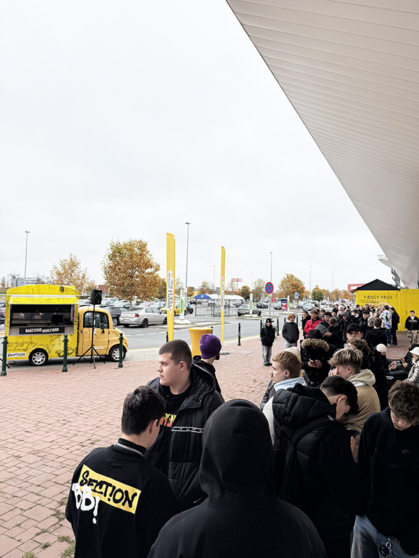 Reproduktory využíváme hlavně na eventech mimo naši „základnu“, mezi které patří například každoroční roadshow ve spolupráci s pořadem Masterchef Česko nebo letos Hells Kitchen Česko, což znázorňují fotografie pořízené v obchodních centrech. Na třetím obrázku jsme využívali na našich roadshow ve spolupráci s firmou Sect!on, která je známá mezi mladými, prodejem oblečení a limitovaných bot.