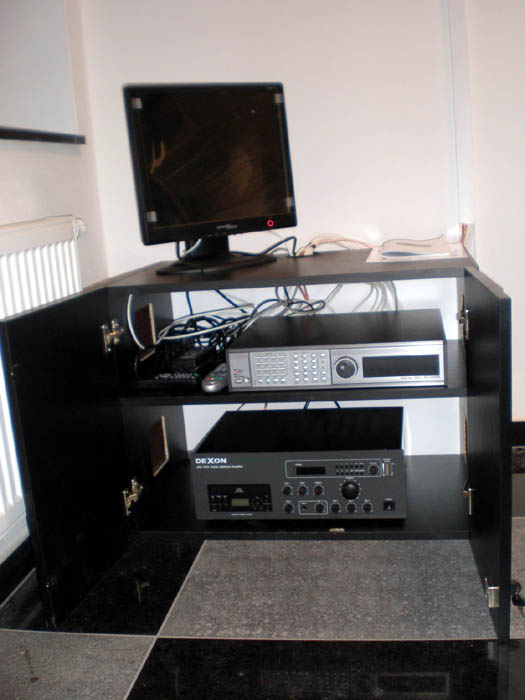 v přiložených fotografiích je zobrazena realizace a zapojení čtyř podhledových reproduktorů DEXON RP 122 bez transformátoru a rozhlasové ústředny JPA 1120. Reproduktory a ústředna jsou zapojeny na naší pobočce v Brně, kde zpříjemňují nakupování zákazníku reprodukcí hudby.