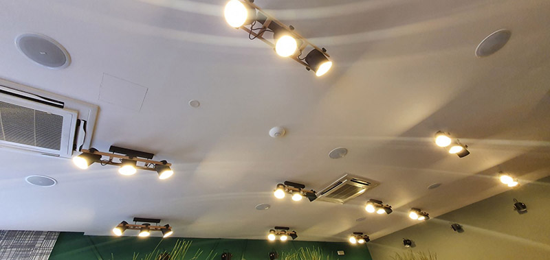 Jedná se o celkem 16 reproduktorů RPT102 100V ve dvou zónách + třetí zóna jsou dva SP412 100V repro pro venkovní posezení. Budíme ústřednou JPA1186, zapojenou do lokální LAN.