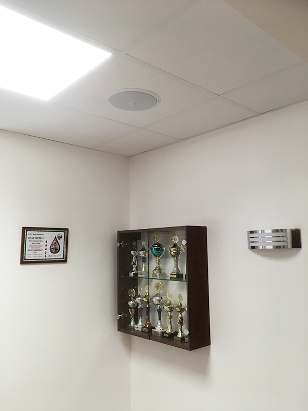 Hraje to naprosto úžasně skvěle a čistě se ten zvuk rozléhá. Na to jak to hraje je skvělé, že reproduktory jsou zabudovány ve stropě takže je to skoro neviditelné oproti dřívějším bednám, které visely na stěně a kolikrát spadly při větších akcích. Takže hodnotíme výkon ale decentní vzhled až minimalistické rozměry.
