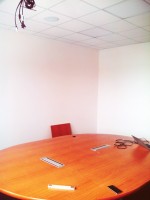 K zasílaným fotografiím. Ta první obsahuje kromě klasických kazet stropní svítidla LED RGB, s možností i dálkového ovládání, takže lze nastavit intenzitu a teplotu barevného podání k dotvoření atmosféry. Dále pak jsou vidět osazené stropní reproduktory DEXON v setu RP122+JPM2021 (2×20W s Bluetooth zesilovačem) uchycené v držácích pro RP122. Dále je ještě vidět uchycený diaprojektor mezi LED panely. Na druhém obrázku je potom vidět stůl, ve kterém jsou osazeny motoricky ovládané výklopné zásuvky VAULT s přípojnými místy pro napájení, dobíjení mobilů a konektivitou LAN. Uvnitř stolu je schován přípojný bod WiFi.