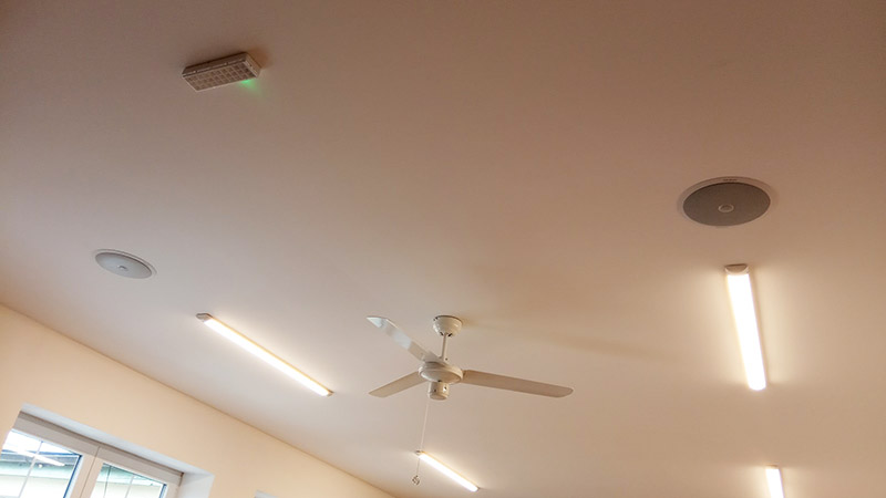 Volba padla na podhledové reproduktory RP 122. Díky montáži do sádrokartonu jsme schovali přívodní kabely a výsledný vzhled je velmi uhlazený.
