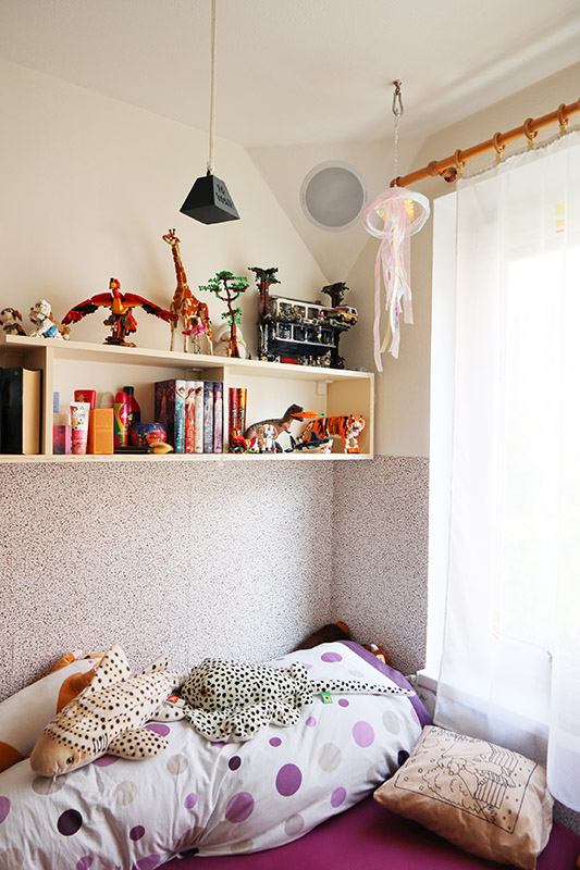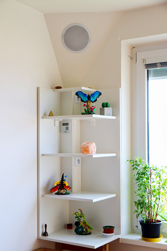 Stejné řešení jsme zvolili i v dětském pokojíku našich dospívajících dívek, jen reproduktor RP 93 je napájen levným noname Bluetooth zesilovačem 2×15W zabudovaným do odkládacího stolku.