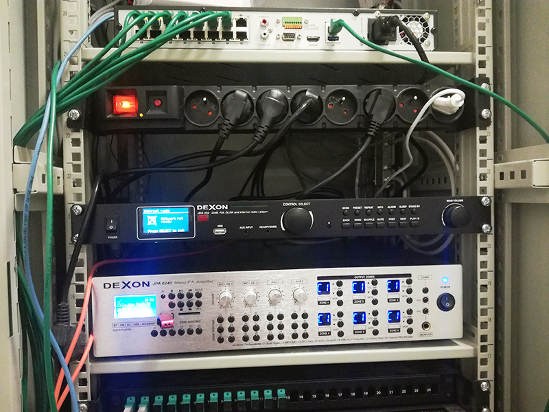 Byl použit zesilovač JPA 6240, jako další zdroj hudby internetové radio JBG 203 a podhledové repro RPT 110×110. 100V rozvod byl proveden prostřednictvím rozhlasového kabelu DEXON.