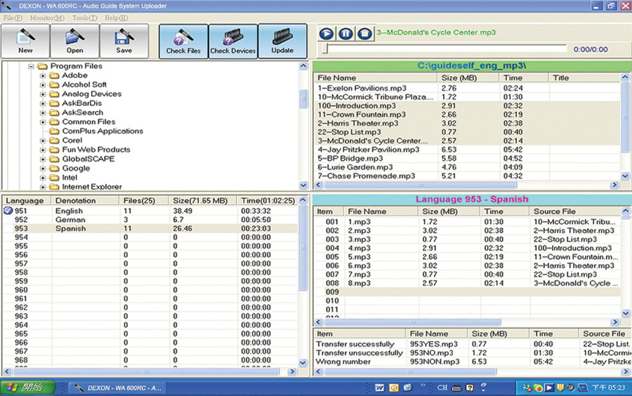 - v obslužném softwaru na PC řídíme, které soubory z HDD nebo CD mechaniky či jiných vyměnitelných paměťových médií se mají nahrát do kterých sluchátek a tam do kterých jazykových složek. Kompletně spravujeme hlasové soubory i s rozlišením jazyků