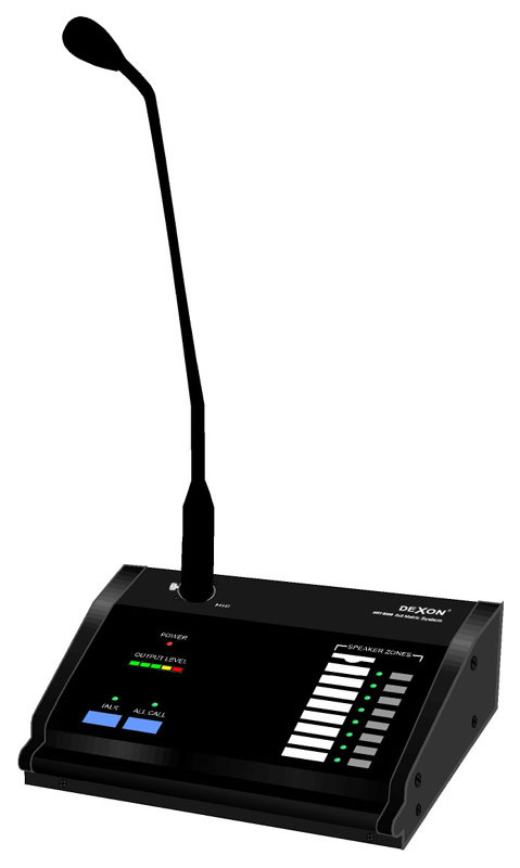 Stručný popis: lokální mikrofon pro hlášení, volba z 8 zón, indikace stavu, zaneprázdnění a volby zón, elektretový mikrofon an husím krku, spojení s maticí přes UTP