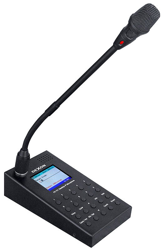 PA 701 je IP mikrofon, který doplňuje rodinu IP zařízení technologie Dexon IP Audio. Mikrofon můžeme provozovat třemi způsoby: