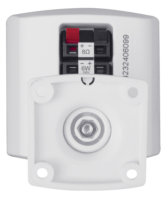 Stručný popis: 6 W / 100 V, nebo 8 Ω, 88 dB, 150 – 20 000 Hz, kloubový držák, 2,5″ širokopásmový polypropylenový rep., malé provedení. Malá, ale za to účinná!