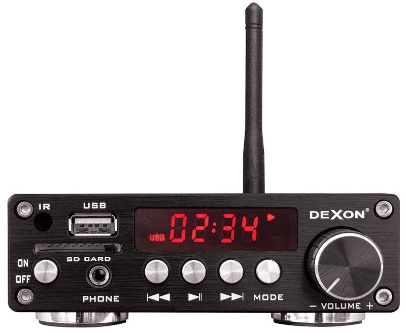 Stručný popis: 1 line vstup, 1 stereo zóna, 2 × 30 W, přehrávač MP3, SD + USB čtečka, Bluetooth, IR dálkové ovládání, malé rozměry. Malá, ale šikovná!